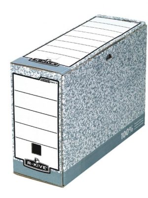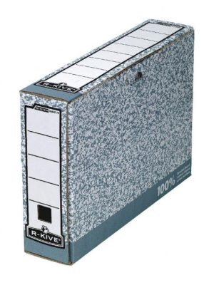 Boxy s kapacitou 1000 listov formátu A4. Šírka chrbta 100 mm.Archívne boxy sú z recyklovného kartonu s otvorom pre ľahkú manipuláciu určené na archiváciu dokumentov. Predtlač na popis na ...