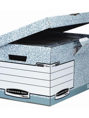 Archívna krabica na ukladanie a archiváciu archivačných boxov. Bočné otvory na prenášanie, sklápacie veko, predtlač na popis na veku i bokoch. Stabilita pri stohovaní je zaisťovaná vzájomným spojením krabíc pomocou špeciálnych otvorov a úchytov. Väčšie balenie ...