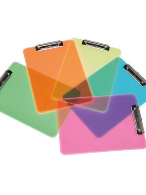Písacia podložka A4 z priehľadného plastu v piatich neónových farbách s možnosťou zavesenia. Ľahko uchopiteľný silný plochý kovový klip s ochrannými plastovými rohmi. Rozmery 22,6 × 31,8 × 1,5 ...