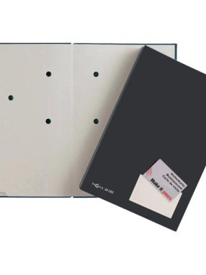 Podpisová kniha 20-dielna. Sivý vnútorný kartón s otvormi na identifikáciu obsahu, okienko na popisovateľný štítok. Počet oddielov: 18Úprava: ľanováFarba: čierna