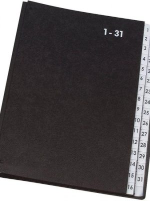 Podpisová kniha 20-dielna. Sivý vnútorný kartón s otvormi na identifikáciu obsahu.Vonkajšie prevedenie plast. Farba: čiernaÚprava: plastováPočet oddielov: 19