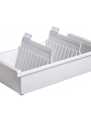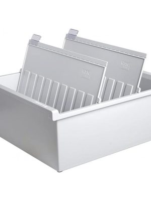 Kartotéka z antistatického nárazuvzdorného plastu na 1000 kartičiek ukladaných horizontálne. Vybavená dvoma plastovými oddeľovačmi, (inak prázdna) a ochrannými plstenými podložkami. Dodávaná bez vrchného krytu. br />Formát karty: A6Vonkajší rozmer: ...