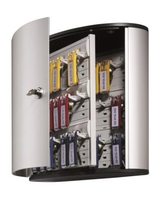 Skrinka na 54 kľúčov s dvierkami, otvárajúcimi sa z dôvodu lepšej obsluhy v 180° uhle. Jednoduchá montáž na stenu. Súčasťou balenia je montážna sada, 2 bezpečnostné kľúče a 6 menoviek na kľúče v rôznych farbách. Farba strieborná.Výška: 28 cm