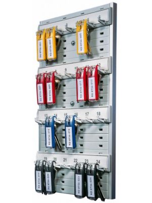 Veľká skrinka na 48 kľúčov s dvierkami, otvárajúcimi sa z dôvodu lepšej obsluhy v 180° uhle. Jednoduchá montáž na stenu. Súčasťou balenia je montážna sada, 2 bezpečnostné kľúče a 6 menoviek na kľúče v rôznych farbách. Farba strieborná.Výška: 40 ...