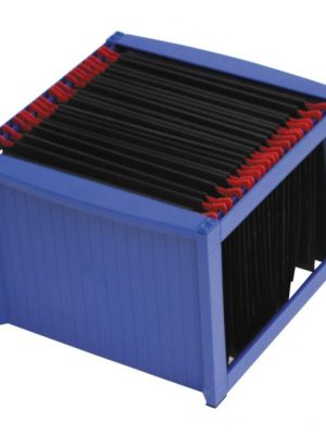 Zásobník na 20 štandardných závesných obalov formátu A4. Dodávaný bez obalov. Rozmery 330×260×160 mm.Farba: tmavomodrá