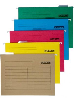 Závesné obaly z recyklovaného kartónu Manila gramáže 230 g / m² s indexom z priehľadného plastu s výmenným papierovým štítkom. Rozpätie vodiacich líšt 330 mm. Farba mix. Balenie 5 ...