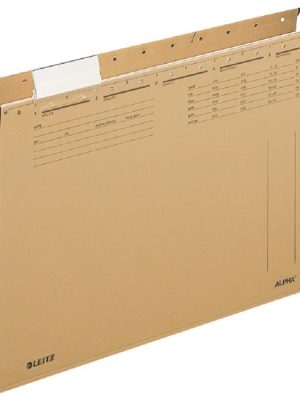 Závesné obaly z recyklovaného kartónu Manila gramáže 230 g / m² s indexom z priehľadného plastu s výmenným papierovým štítkom. Rozpätie vodiacich líšt 330 mm. Farba hnedá. Balenie 5 ...