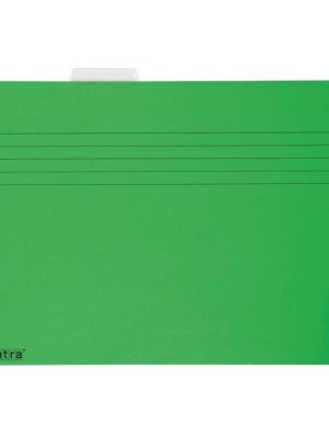 Závesný obal na zakladanie voľných listov do formátu A4. Kovové závesné háčiky garantujú dlhodobé používanie. Súčasťou obalu je plastový index a papierový štítok. Papier 230g. Farba: zelenáBalenie: 25 ks