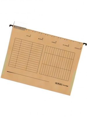 Závesný obal na zakladanie voľných listov do formátu A4. Kovové závesné háčiky garantujú dlhodobé používanie. Súčasťou obalu je plastový index a papierový štítok. Papier 230g. Farba: hnedáBalenie: 25 ks