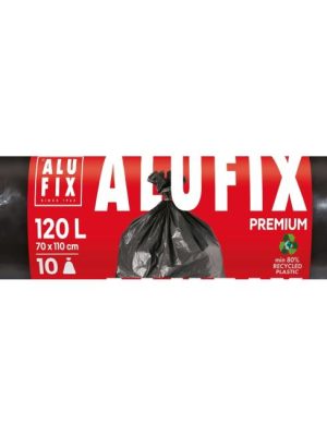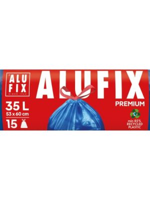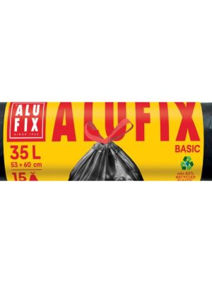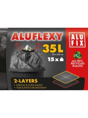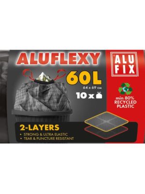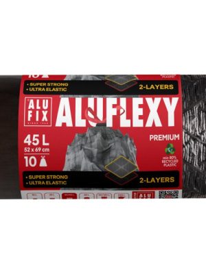 Vrecia na odpad Aluflexy zaťahovacie 45l, 10ks na rolke, hrúbka 30mikrónov, rozmer 52x69cm, sivo – čierne , 2 vrstvové odolné a pružné vrece, materiál LDPE