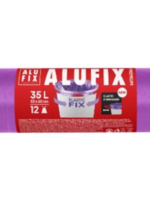 Vrecia na odpad Elastic Fix zaťahovacie s pružnou zaťahovacou páskou, ktorá vrece pevne udrží na odpakovom koši, 35l 12ks na rolke, rozmer 53x60cm, hrúbka 22mikrónov, fialové, materiál LDPE