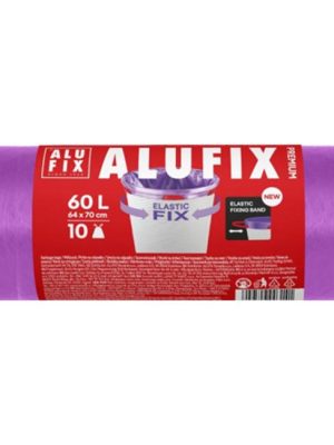 Vrecia na odpad Elastic Fix zaťahovacie s pružnou zaťahovacou páskou, ktorá vrece pevne udrží na odpakovom koši, 60l 10ks na rolke, rozmer 64x70cm hrúbka 22my. fialové, LDPE