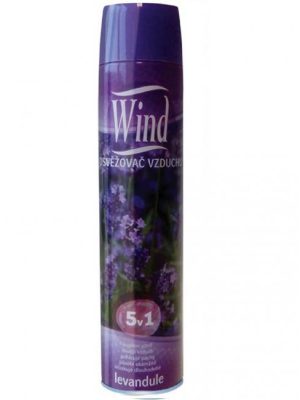Osviežovač vzduchu Wind v spreji s neutralizérom pachov. Aerosol rychle a účinne osvieži vzduch vôňou Levandule.