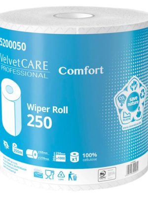 Jemná a silná 2-vrstvová priemyselná čistiaca handra Velvet CARE Professional Comfort 250 – obrovská rolka s 250 metrami a 1000 útržkami na každej rolke. Výška role 264 mm, 2 ...