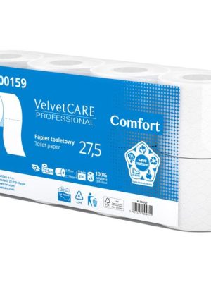 Silný a mäkký 2-vrstvový toaletný papier Velvet CARE Professional Comfort s veľkou rolou 27,5 metra, 8 roliek v balení, 250 útržkov, 100 % celulóza