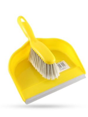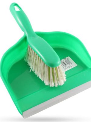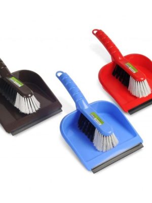 Súprava – metlička so syntetickými štetinami a lopatka s gumovou lištou. Mix farieb – hnedý, modrý a červený.