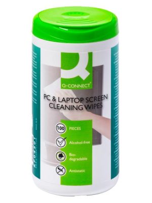 Mokré utierky balené v dóze vhodné na notebooky, LCD, TFT a plazmové obrazovky. Bez obsahu alkoholu, nehorľavé. V balení 100 útržkov. Biologicky odburateľný.