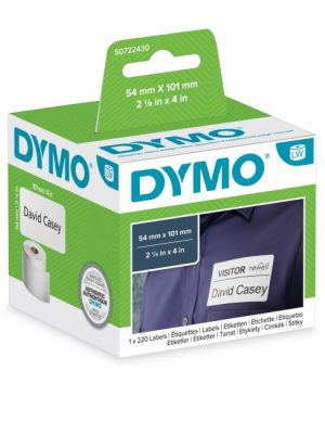 Etikety do tlačiarní Dymo LabelWriter 450 a Labelwriter 450 Duo sú navinuté v rolke. Materiál papier.Farba etikiet biela.Farba: bielaRozmery: 101×54 mmBalenie: 6×220 ks