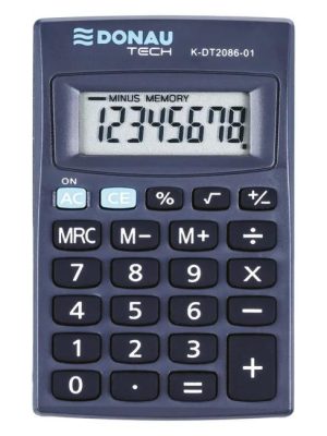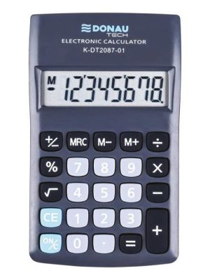 Malá vrecková kalkulačka s veľkým 8-miestnym maticovým displejom a gumenými tlačidlami. Vybavená vyklápacím krytom proti nechcenému stlačeniu tlačidiel.Výpočet %, 3 tlačidlá na prácu s pamäťou, funkcia €-prevodu, zobrazenie použitej funkcie +,, ×, ÷, napájanie ...