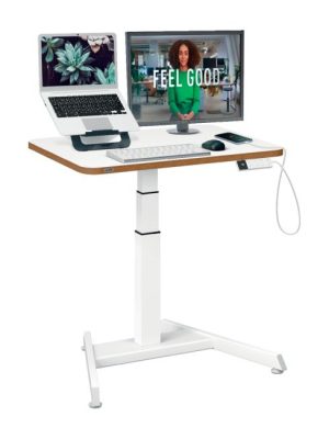 Pneumatický stôl na sedenie/státie s kompaktnou stolnou doskou (80 x 60 cm) na použitie s notebookom (neodporúča sa používať s monitorom)Jednoduché nastavenie výšky vďaka technológii plynových pružínDoska stola z ...