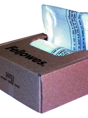 Odpadové vrecia pre skartovačky Fellowes. Objem 23 – 28 l, v balení 100 ks.