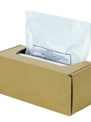 Náhradné plastové vrecia do skartovačiek Primo 1401, 1501, 1800. SECURIO AF150, SECURIO B24, SECURIO AF300, B22. Rozmery : 348x195x800 mm. Balenie 100 ks.