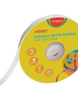 Vysoko kvalitná stuha, saténová, dvojitá, netoxická, na cievke. Rozmery: 12 mm x 22,86 m. Farba: biela.
