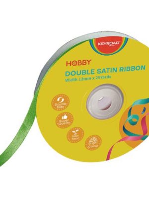 Vysoko kvalitná stuha, saténová, dvojitá, netoxická, na cievke. Rozmery: 12 mm x 22,86 m. Farba: zelená.