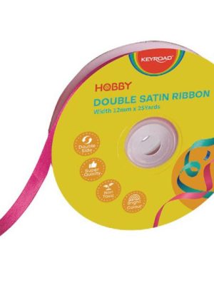 Vysoko kvalitná stuha, saténová, dvojitá, netoxická, na cievke. Rozmery: 12 mm x 22,86 m. Farba: ružová.