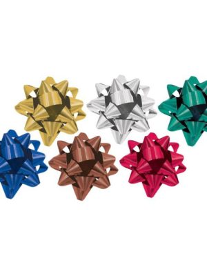 Mašľa v mixe matných metalických farieb. Ideálne pre moderné ozdobenie darčeka. Rozetka má na spodnej strane lepiacu pásku pomocou ktorej ju pripevníte na krabičku. Balenie: 50 ksPriemer: 80 mmŠírka ...
