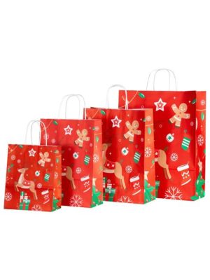 Vianočná papierová taška 180x80x220, Vianočný jeleň.Väčšie balenie: 10 ksKrútené ucho