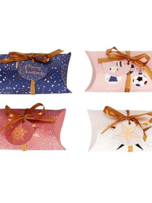 Papierová darčeková krabička pukačka 150x70mm 8 ks mix 4 vianočných motívov. Previazané stuhou s visačkou, elegantný dizajn vhodný na každú príležitosť. Ideálne na balenie malých darčekov, ako sú šperky, ...