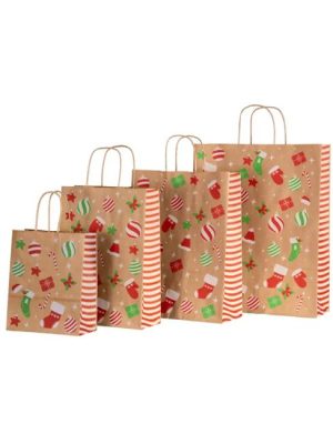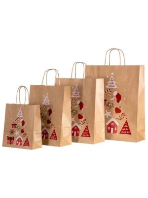 Vianočná papierová taška 260x120x350, Vianočná Radosť.Hnedý kraftKrútené uchoVäčšie balenie: 10 ks