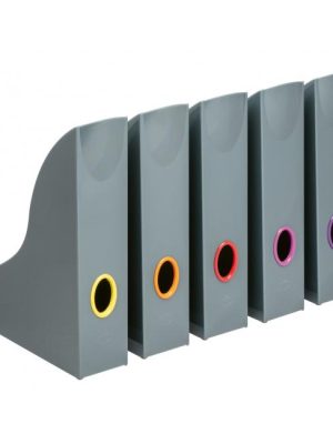 Moderný stojan na časopisy pre uloženie dokumentov formátu A4 na pracovnom stole s unikátnym embosovaným povrchom (štvorčeky) na dne stojana vo sviežich farbách radu Esselte VIVIDA. Znížený chrbát pre ...