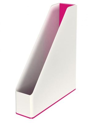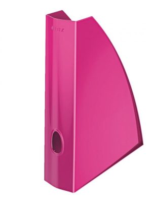 Stojan na bezpečné ukladanie časopisov a katalógov v dvojfarebnom prevedení v metalických farbách WOW s lesklým povrchom. Farba ružová.