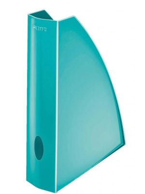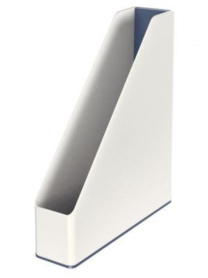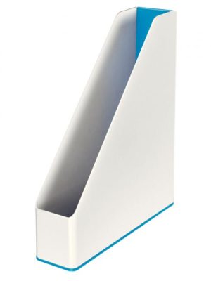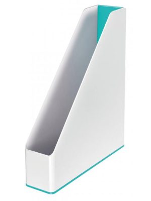 Stojan na bezpečné ukladanie časopisov a katalógov v dvojfarebnom prevedení v metalických farbách WOW s lesklým povrchom. Farba ľadovo modrá.