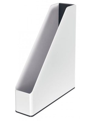 Stojan na bezpečné ukladanie časopisov a katalógov v dvojfarebnom prevedení v metalických farbách WOW s lesklým povrchom. Farba biela/červená.