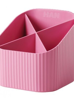 Stojan so 4 priehradkami v modernom dizajne a trendových farbách. Materiál vysokokvalitný PP. Rozmery 111 × 121 × 106 mm. Farba ružová.