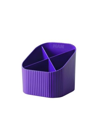 Stojan so 4 priehradkami v modernom dizajne a trendových farbách. Materiál vysokokvalitný PP. Rozmery 111 × 121 × 106 mm. Farba fialová.
