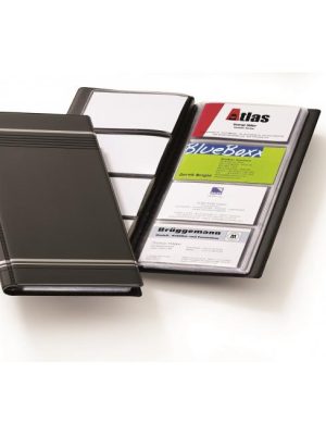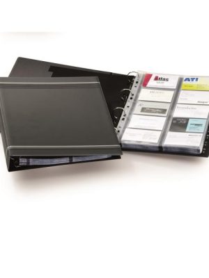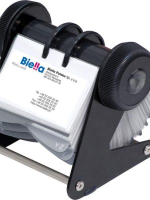 Praktický rotačný vizitkár s kovovou podstavou v čiernej farbe obsahuje 200 obojstranných vreciek rozmerov 103×66 mm na 400 vizitiek a abecedný rozraďovač s 2 oddielmi.Farba: čierna