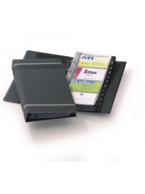 Exkluzívny zakladač na vizitky v úprave matné PVC so 4-krúžkovou mechanikou. 25 obalov z polypropylénu, 12 čiernych rozlišovačov A—Z. V dizajne Visifix s dekoratívnymi prúžkami. Rozmery 145×255 mm. Možnosť rozšírenia náhradnými obalmi obj. kód DU2387 19.( V balení 10 ks náhradných obalov.)Rozmery: ...