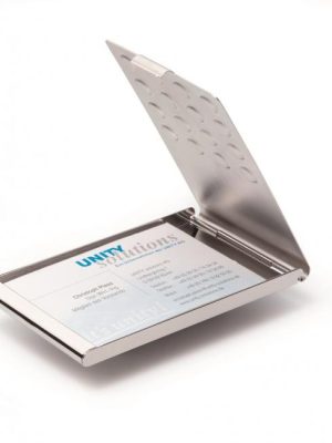 Elegantná a praktická hliníková krabička na vizitky v matnej úprave. Vnútorné rozmery 90 × 55 mm. Kapacita 20 vizitiek. Farba strieborná.Vnútorné rozmery: 90 x 55 mmKapacita: 20 vizitiekÚprava: matná