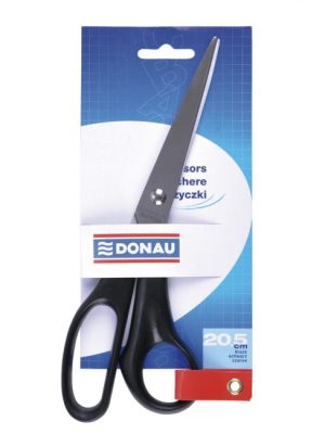 Kancelárske nožnice na strihanie papiera, kartónu, lepenky, samolepiacej pásky a pod. s pogumovaným úchytom a strihacou časťou z nehrdzavejúcej ocele. Farba čierna. Väčšie balenie 12 ks.Veľkosť: 20,5cm
