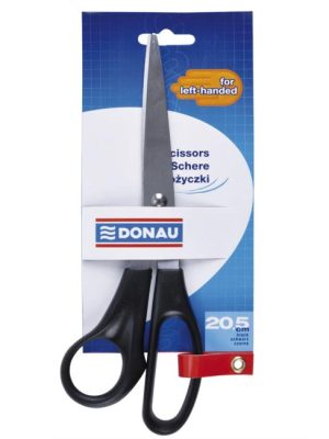Kancelárske nožnice pre ľavákov na strihanie papiera, kartónu, lepenky, samolepiacej pásky a pod. s pogumovaným úchytom a strihacou časťou z nehrdzavejúcej ocele. Farba čierna.Veľkosť: 20,5 cm
