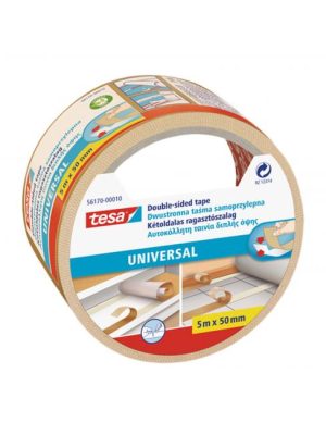 Univerzálna obojstranná páska ideálna na koberce a trvalé spojenie rôznych materiálov, na ručné práce a dekorácie. Rozmery 50 mm × 5 m.