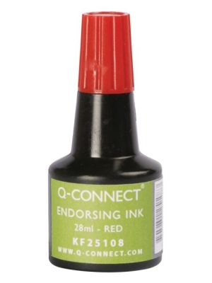 Q-Connect univerzálna pečiatková farba bezolejová, vhodná na gumené a samofarbiace pečiatky. Objem 28 mℓ. Väčšie balenie 10 ks. Farba červená.