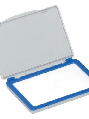 Suchá poduška na pečiatkovú farbu do nesamofarbiacich pečiatok. Farba sivá s plastovou obrubou modrej farby. Väčšie balenie 12 ks.Rozmery: 105 x 66 mm