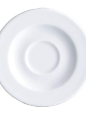 Podšálka z porcelánu. Farba biela. Priemer 14,5 cm. Balenie 6 ks.
