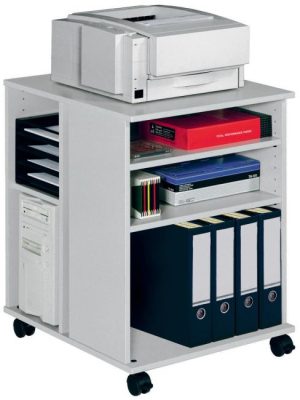 Mobilný vozík otvorený z troch strán so šiestimi policami vhodný pri šetrení s pracovným priestorom. Nosnosť každej police 25 kg. Vyrobený z vysoko kvalitnej laminovanej drevotriesky hrúbky 16 mm odolnej voči poškriabaniu. Farba sivá.Rozmery (š ...