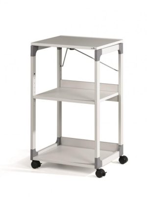Mobilný projekčný vozík s tromi policami. Horná polica je odnímateľná a pri projekcii sa dá naklopiť do 180°, stredná polica je výškovo nastaviteľná po 32 mm, spodná polica je ...